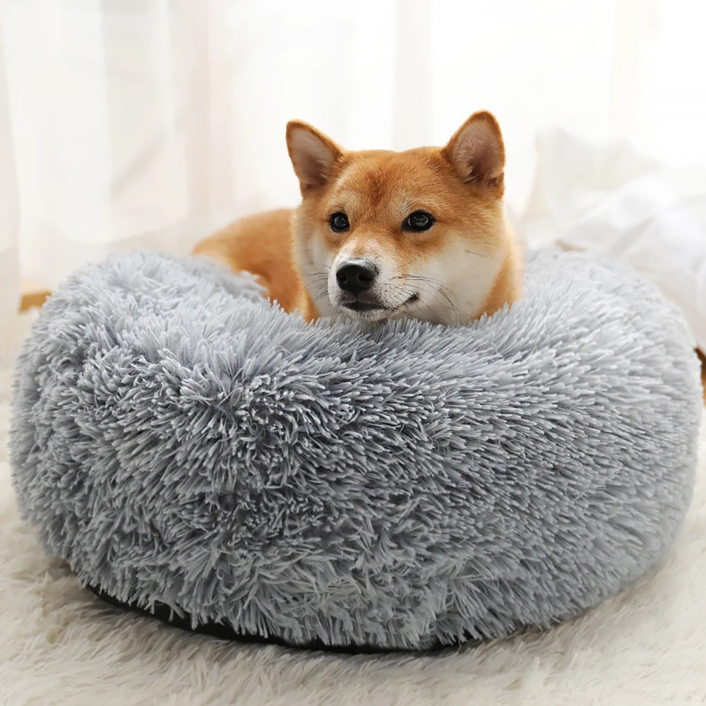 Плюшевая кровать для питомца, супермягкая кровать для собак, собачьи будки, круглая теплая зимняя подстилка для сна, коврик для щенка, портативные принадлежности для кошек