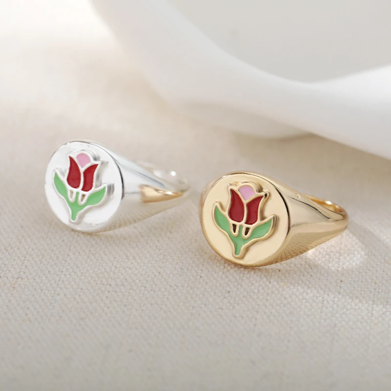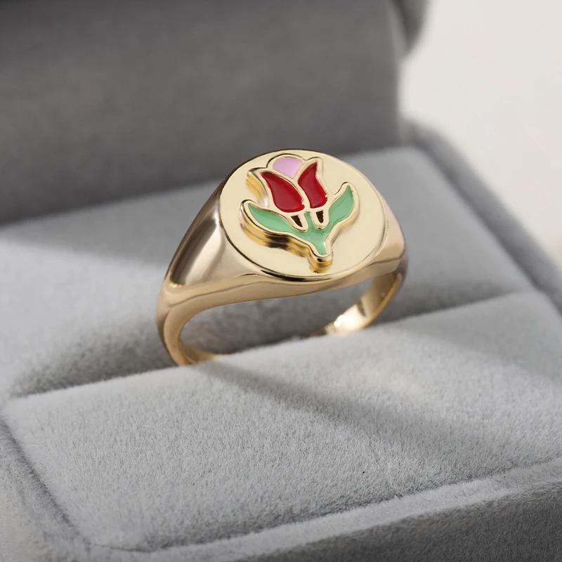 Красочные кольца для женщин милый маленький с ромашками, эмалированное в форме тюльпана от инь (железная Гуаньинь) Кольца Янг для девушек из нержавеющей стали счастливый день рождения, ювелирные изделия в качестве подарка