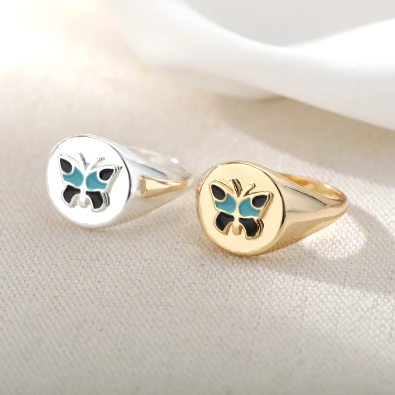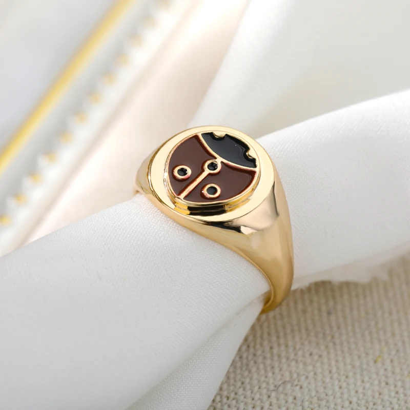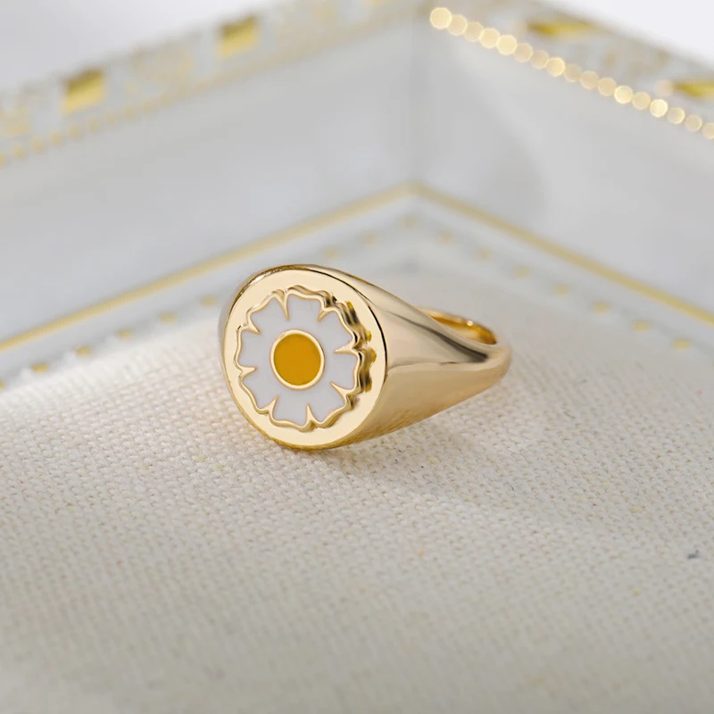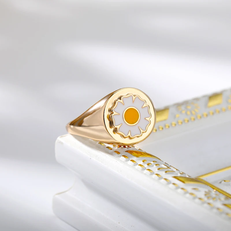 Кольцо-печатка женское, из нержавеющей стали, с золотой маргариткой