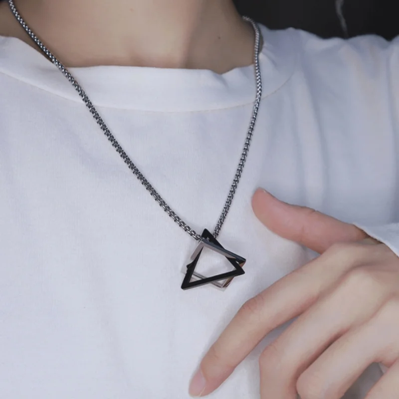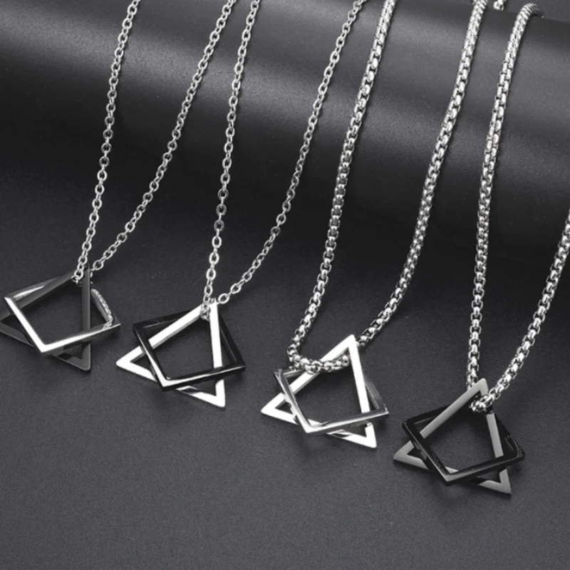 Ожерелье с квадратным треугольным геометрическим кулоном для мужчин...
