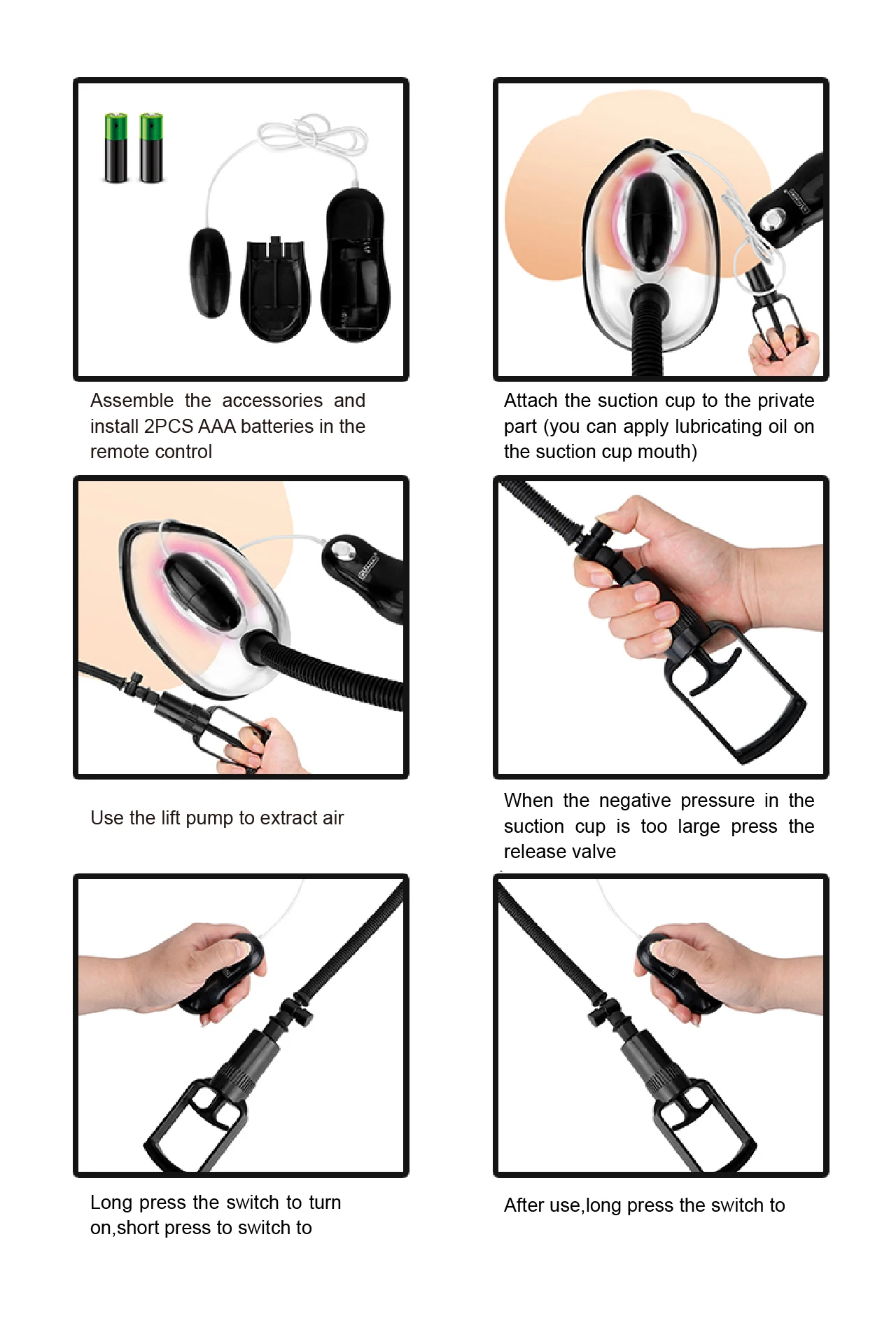 1. Позвольте вакуумной чашке плотно закрыть киску, не оставляйте зазоров;2. Затем Потяните кольцо вручную повторно;3. В зависимости от вашей способности выдерживать, Вакуумная чашка может полностью впитывать киску;4. Чтобы отпустить, нажмите переключатель выхлопа для автоматического выхлопа;Примечание:Из-за разницы между различными мониторами изображение может не отражатьФактический цвет товара. Спасибо!Возможна погрешность в 1-2 см из-за ручного измерения.Упаковочный лист:1 * Вибратор1 * Присоска1 * пульт дистанционного управленияРуководство пользователя на английском языке-1 шт.