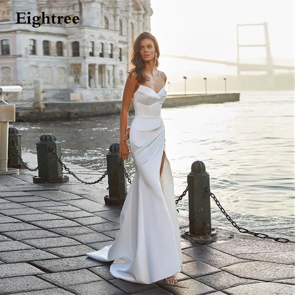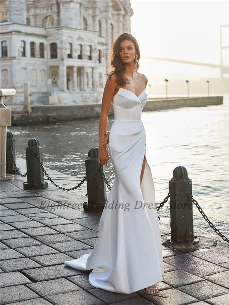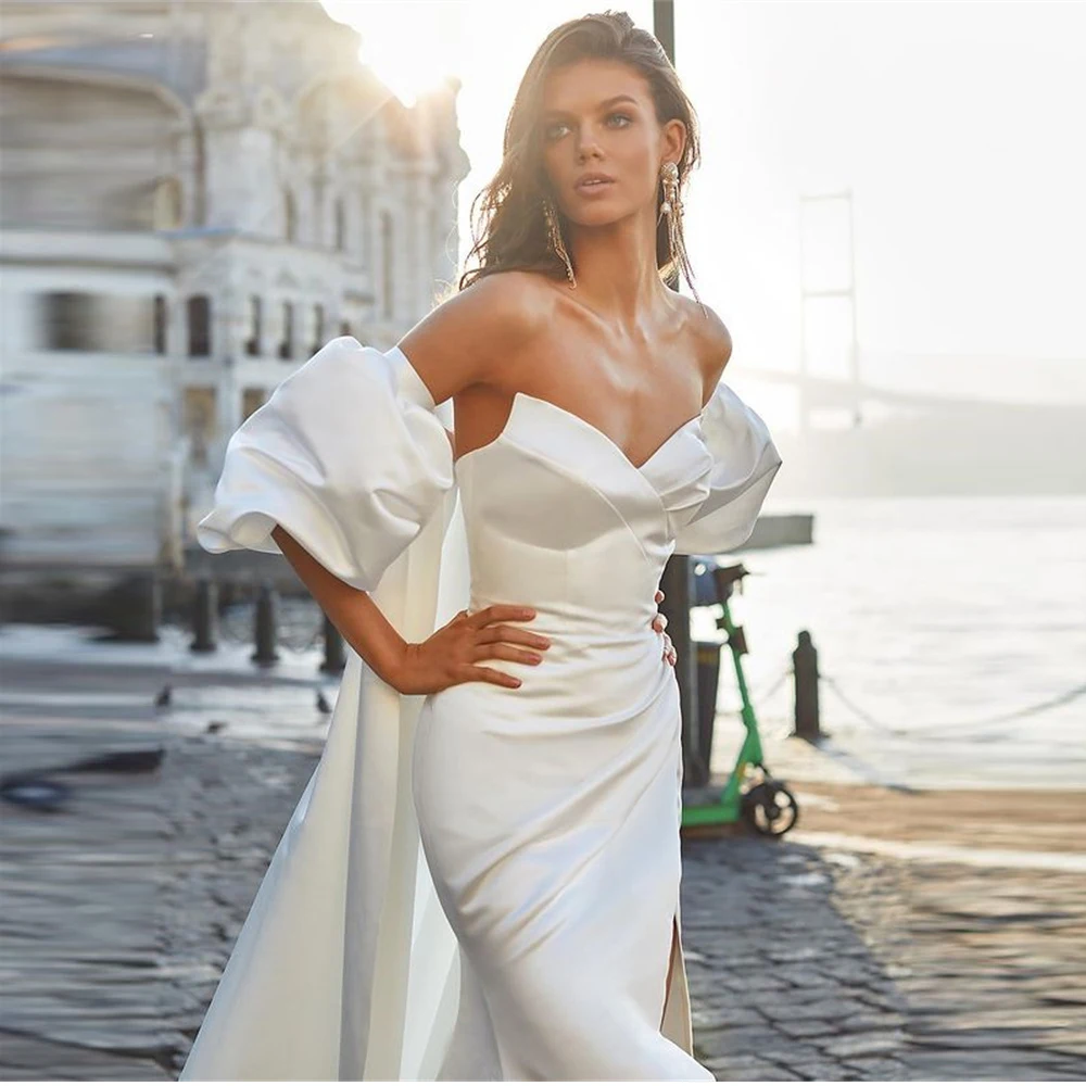 Женское свадебное платье, длинное платье с отстегивающимися рукавами, с разрезом по бокам, лето 2021