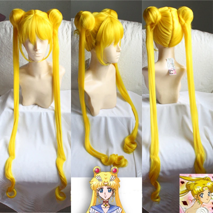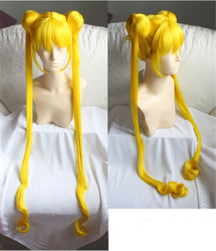 Парики Tsukino Usagi длиной 100 см, лимонный блонд, термостойкие синтетические волосы, косплей, парик + шапочка для парика