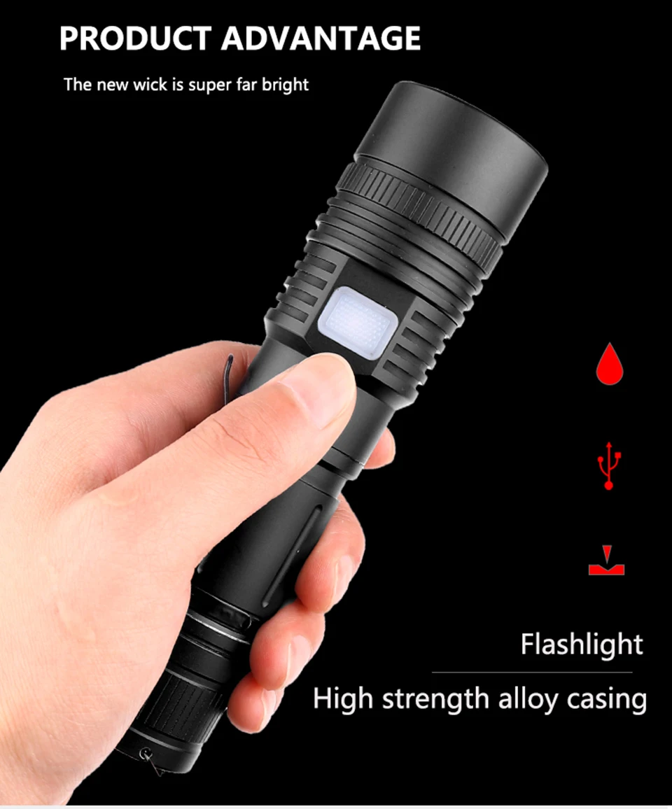Фонарик XHP90.2, 4-ядерный, светодиодный, масштабируемый, Usb, пере...