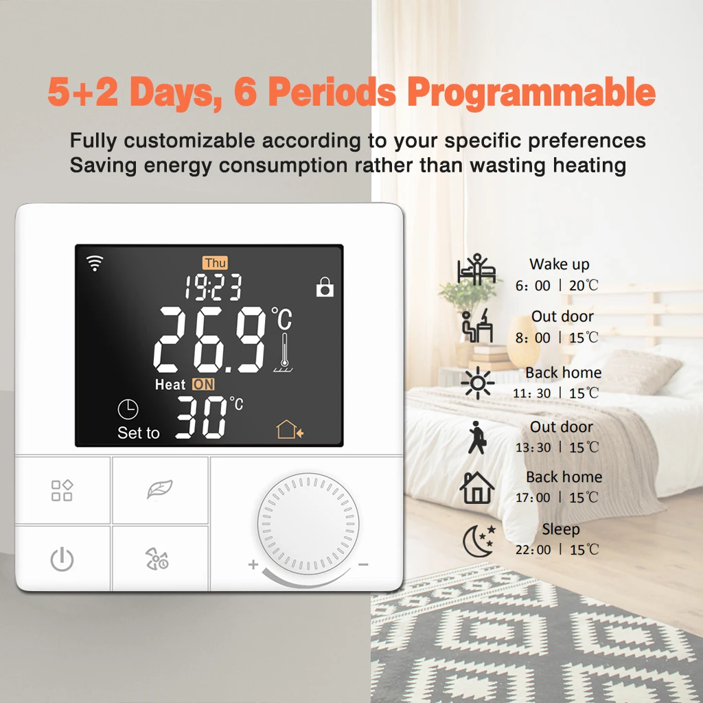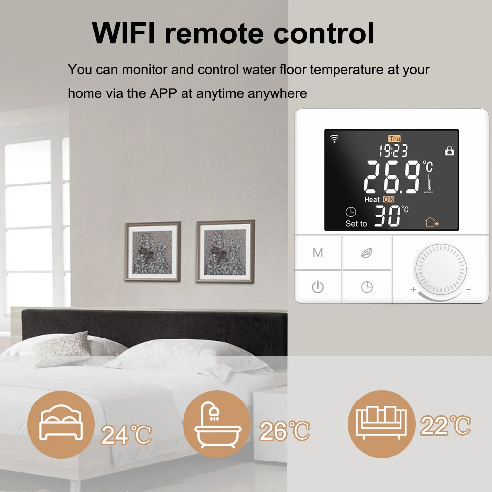Умный термостат для теплого пола Tuya с Wi-Fi, регулятор теплого пола, цифровая программа Alexa, терморегулятор для котла 220 В
