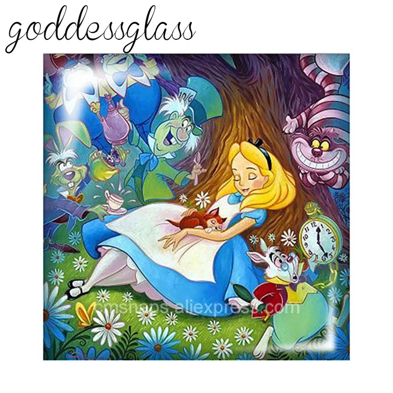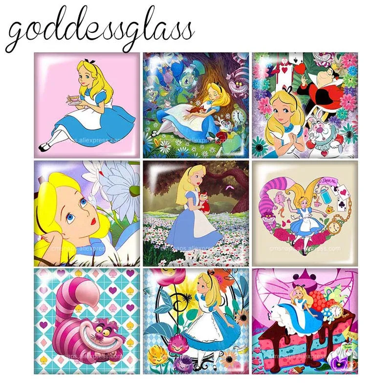 Disney Чеширский Кот из Алисы квадрат 10 шт. 12 мм20 мм25 мм кабошоны разрисованные изделия из стекла демо с плоской задней частью браслет ювелирные украшения своими руками