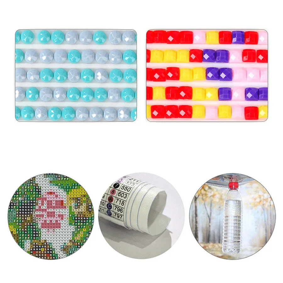 Круглые драгоценные камни-из цветного акрила, приносит блестящие 3D эффекты. Линии не должны быть выровнены в процессе укладки. После завершения не будет никаких неровностей. Расположение быстрее, потому что в наборе есть карандаши.