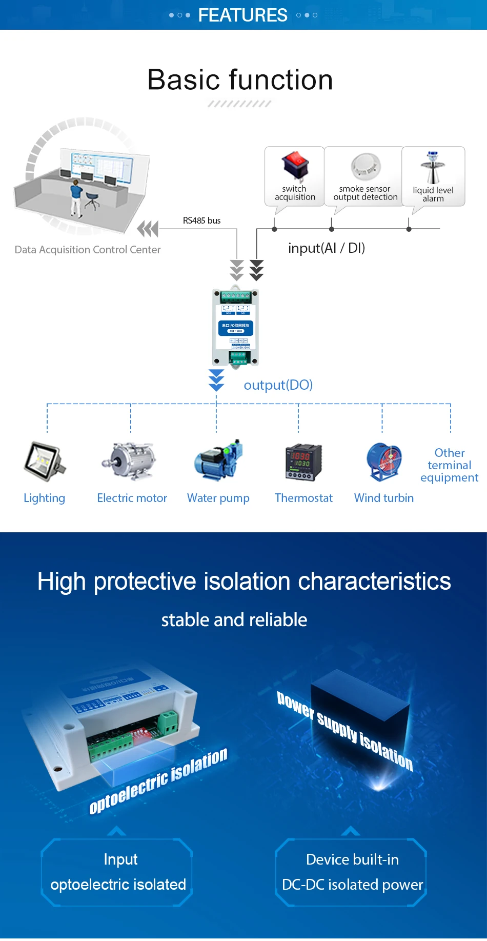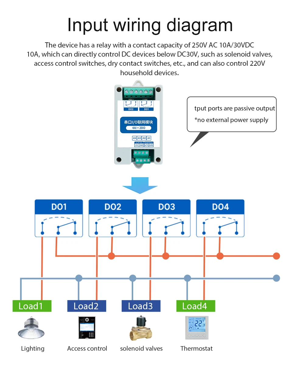 Модуль вводавывода Modbus RTU, сетевые модули с последовательным портом RS485, интерфейс 4DI + 2DO, стандартная установка на рельсах 8 28VDC IoT