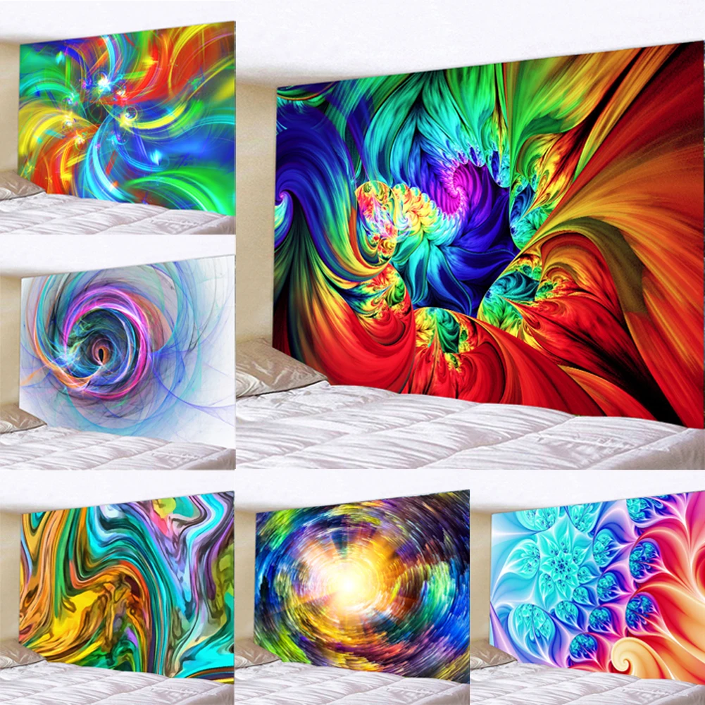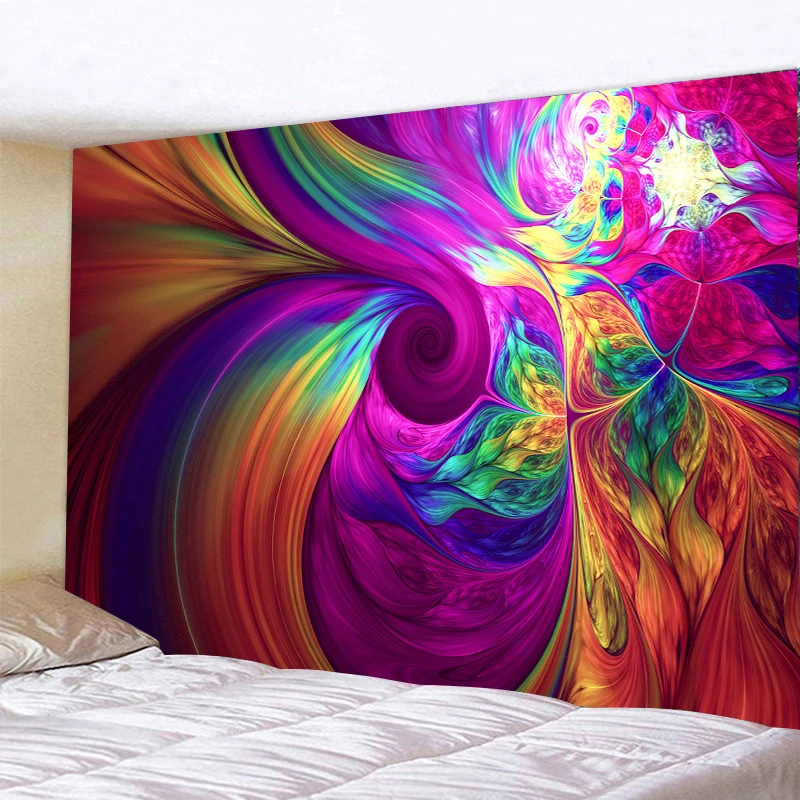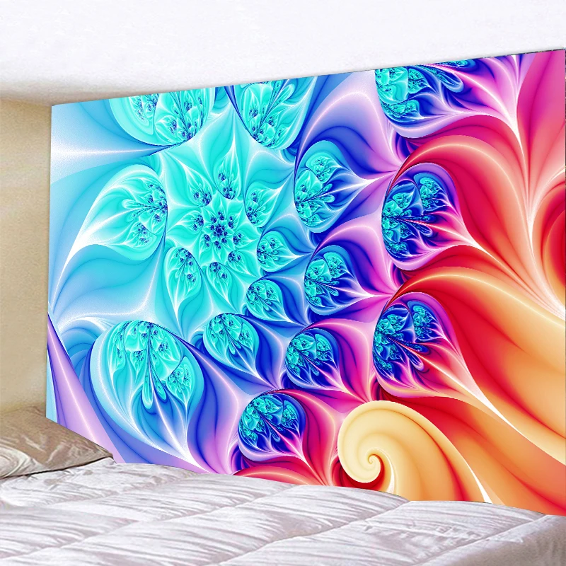 Психоделический абстрактный подвесной гобелен, цветочный настенный гобелен, Радужный спиральный пастельный принт мандалы для украшения спальни