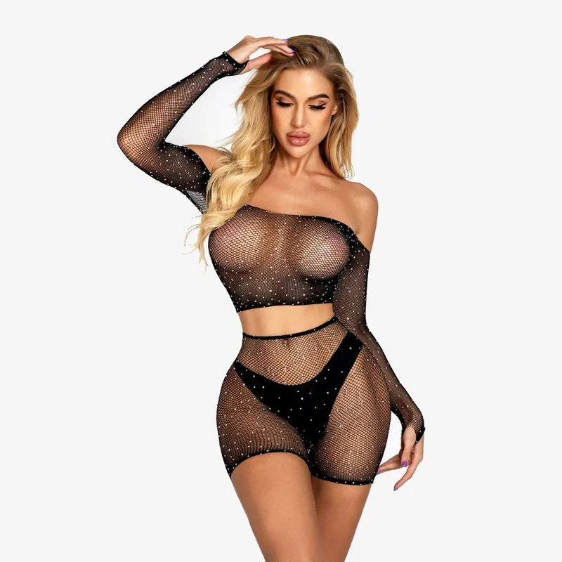 Комплект сексуального нижнего белья с бриллиантами и звездами, униформа для соблазнения, Сетчатое нижнее белье, экзотическое прозрачное, порно-одежда