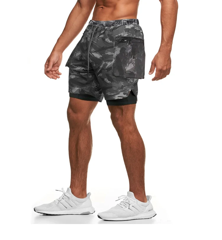 Мужские камуфляжные шорты для бега 2022, 2 в 1, двухслойные быстросохнущие спортивные шорты для тренажерного зала, фитнеса, бега, тренировок, мужские спортивные шорты