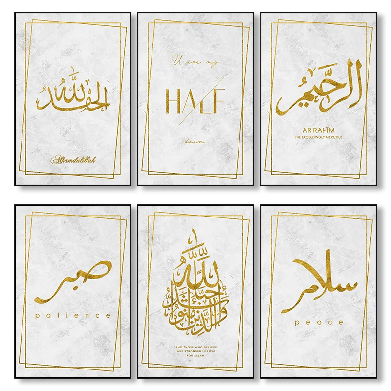 Плакат с изображением мусульманской Арабской Каллиграфии, золотой м...
