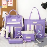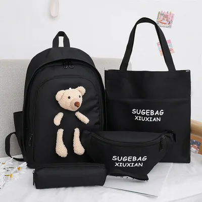 Комплект из 4 предметов, Модный женский рюкзак в стиле Харадзюку, холщовые водонепроницаемые школьные рюкзаки, вместительная универсальная дорожная сумка