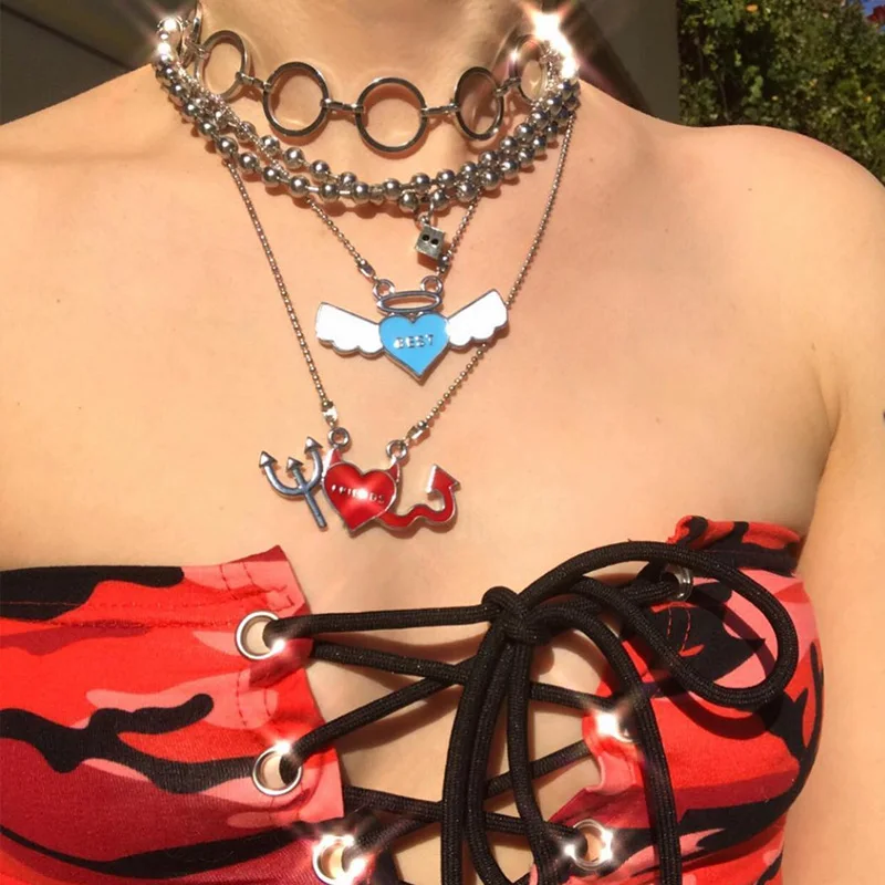 Ювелирные изделия Y2K, ожерелье в форме сердца, ангела, крыла демон...