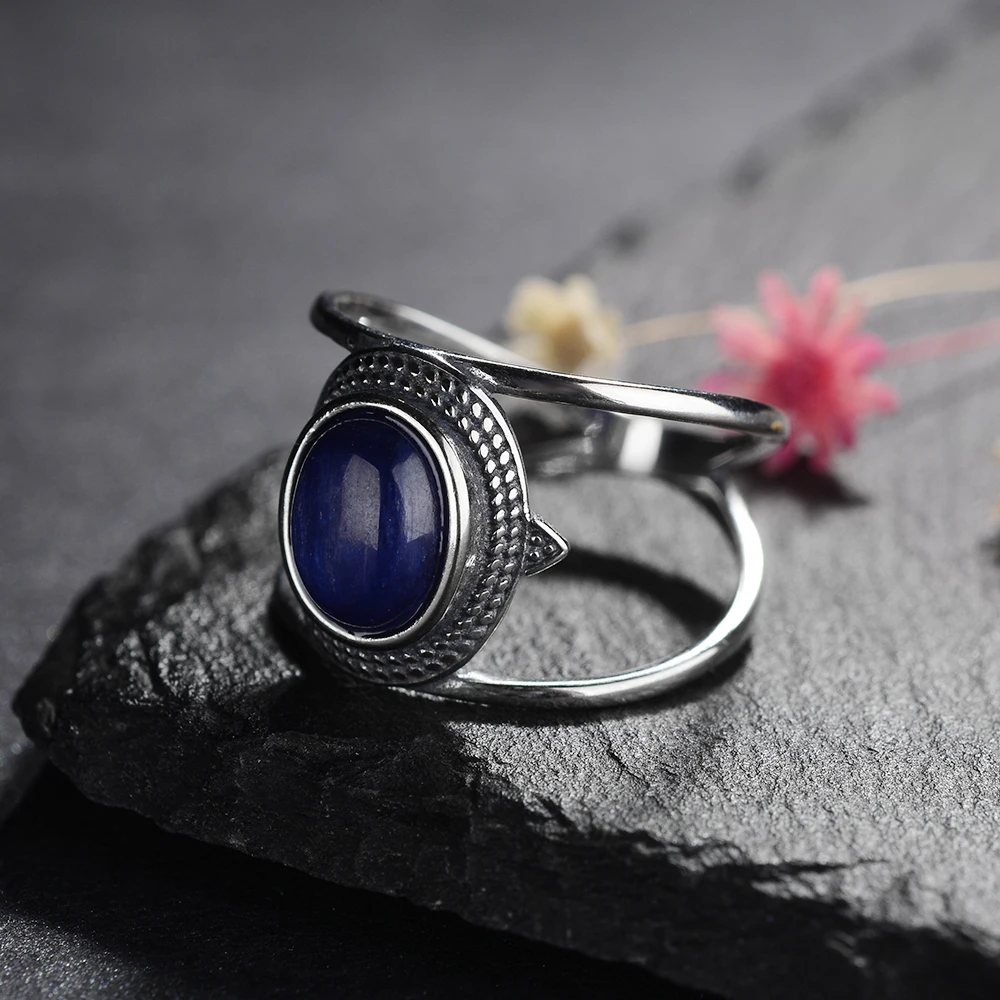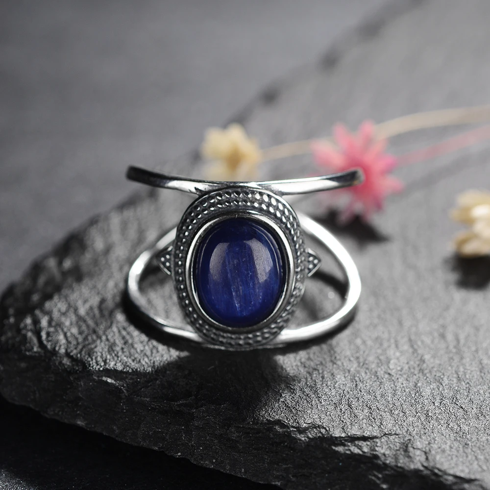 Роскошные натуральные синие Сияющие кольца с кианитом для мужчин и женщин, однотонные 925 драгоценности из серебра и камней, размер 6-10