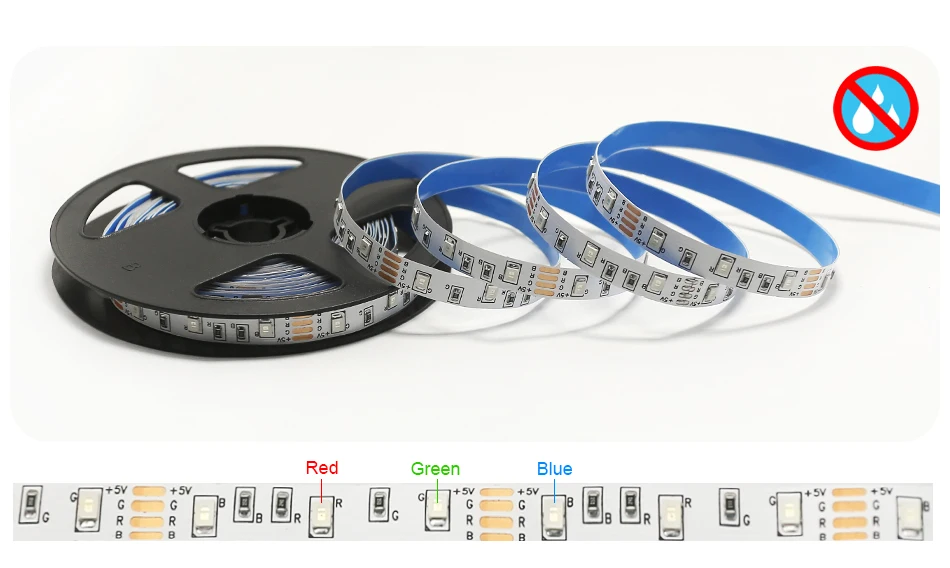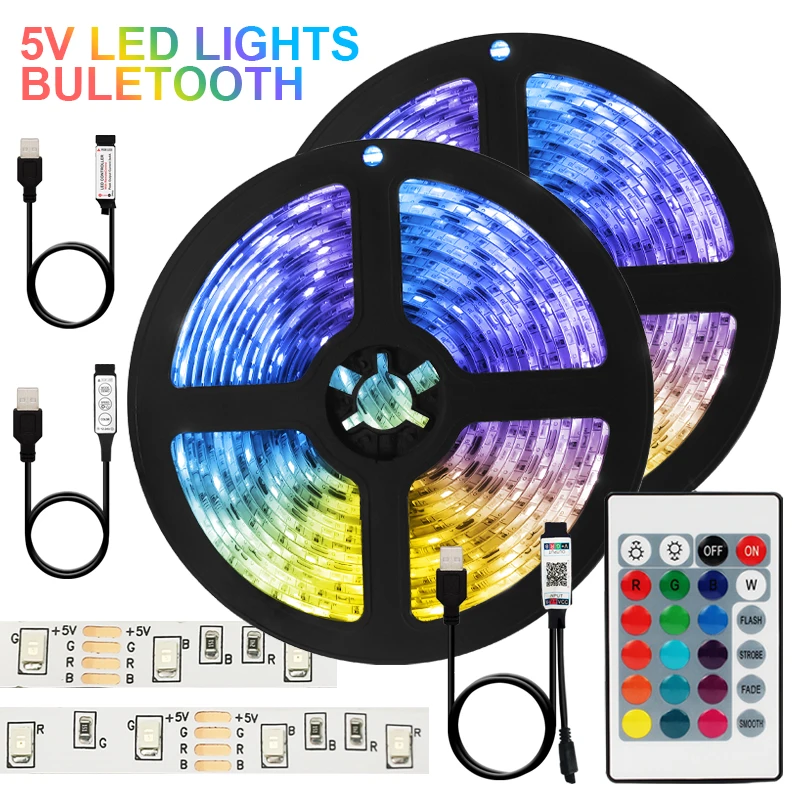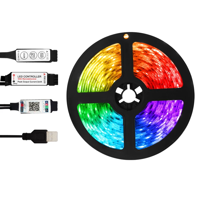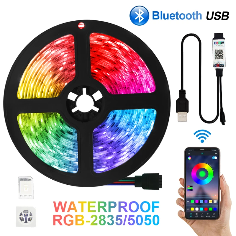 Светодиодный Тип: 2835 SMD СВЕТОДИОДНЫЙКоличество СВЕТОДИОДНЫЙ: 54 светодиодный s/метрСтепень защиты:IP20 (не водонепроницаемый, только для использования в помещении)IP65 (водонепроницаемый, для использования в помещении или на открытом воздухе)Угол луча: 120 °Рабочее Входное напряжение: 5 ВРабочая температура: от-20 до 50 °Режим привода: USBЦвет излучения: RGB