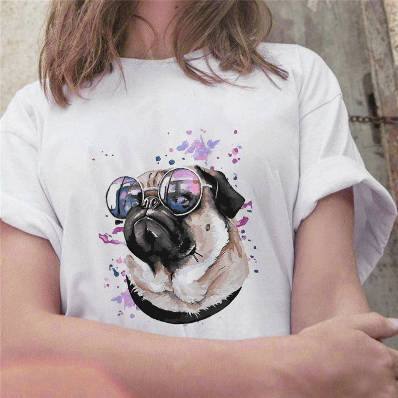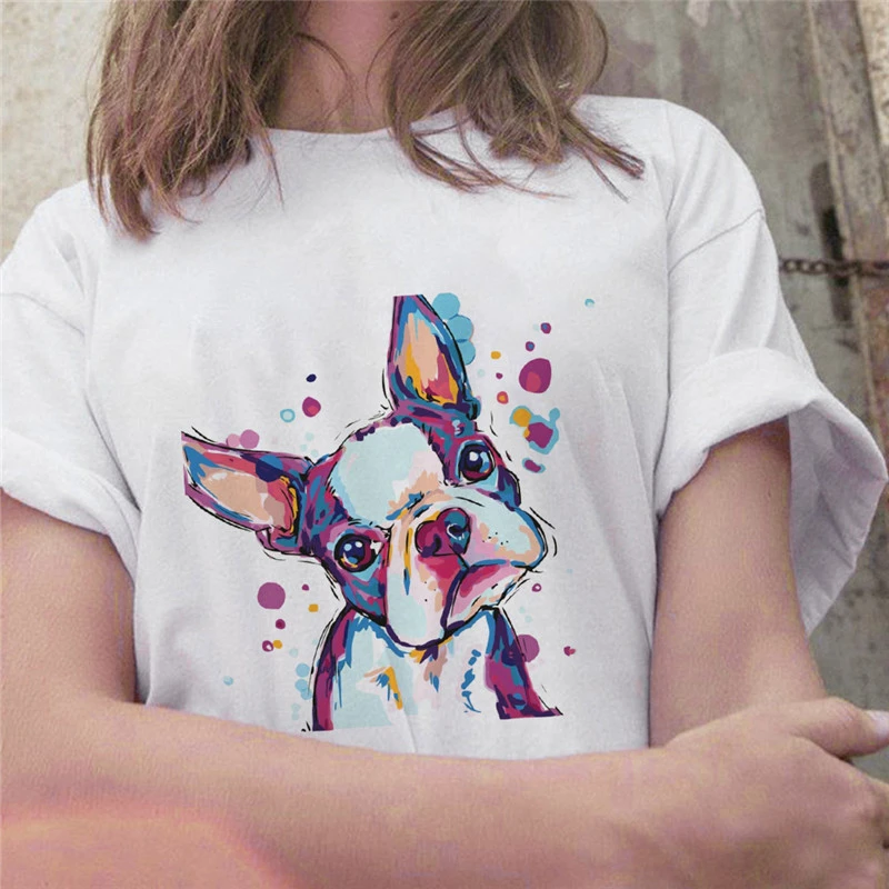 Футболка FIXSYS женская с рисунком масляной живописи, модная гранж-футболка с коротким рукавом, с принтом милой собаки в стиле Харадзюку