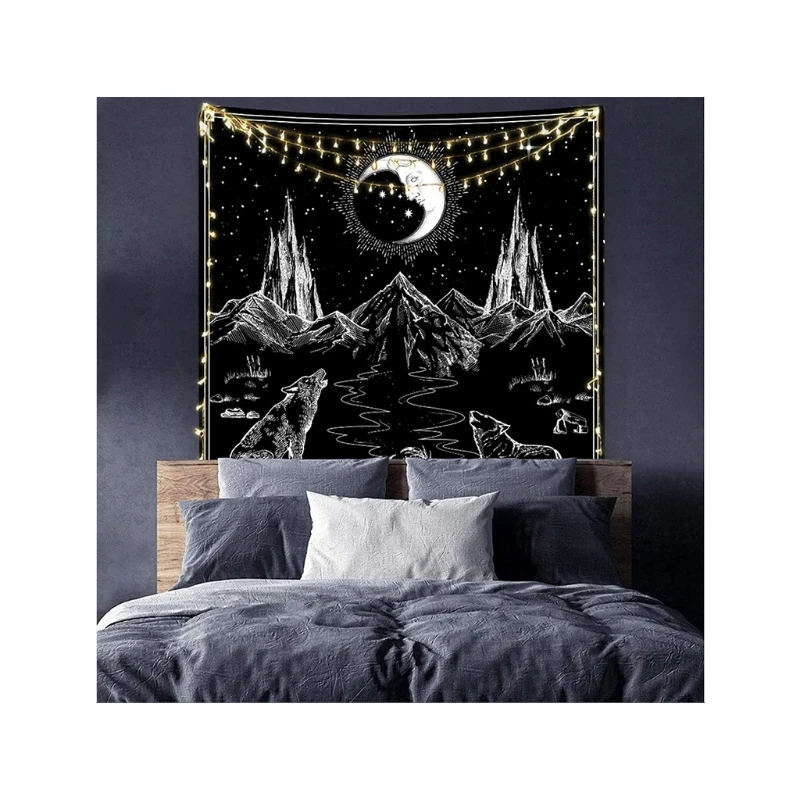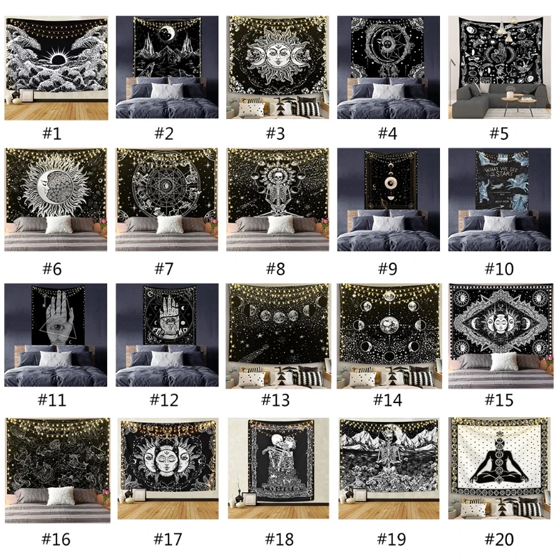 T84E большой гобелен Белый Черный Солнце Луна череп гобелены Настенный Коврик ковры
