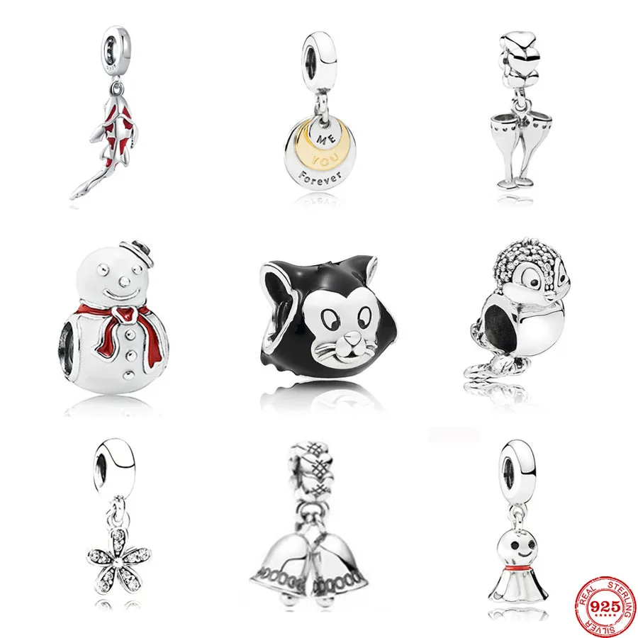 Новый 925 стерлингового серебра Белый Снеговик сова черный бусины кошка, соответственные Европейской Пандоре обаятельные Серебро 925 оригинальный браслет DIY ювелирные изделия для женщин
