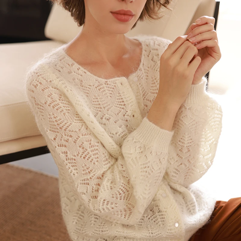 Женский ажурный вязаный свитер, элегантный пуловер с круглым вырезо...