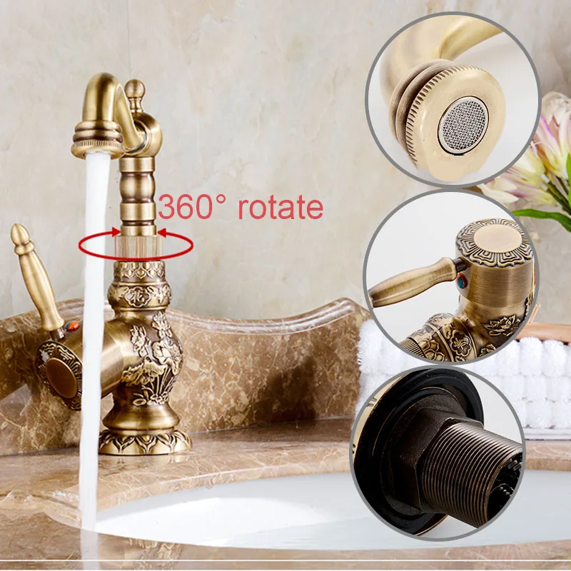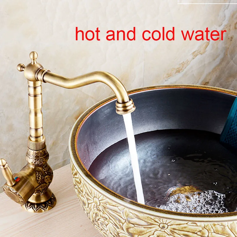 Смеситель для раковины, античная медь, латунь, резной смеситель дюй...