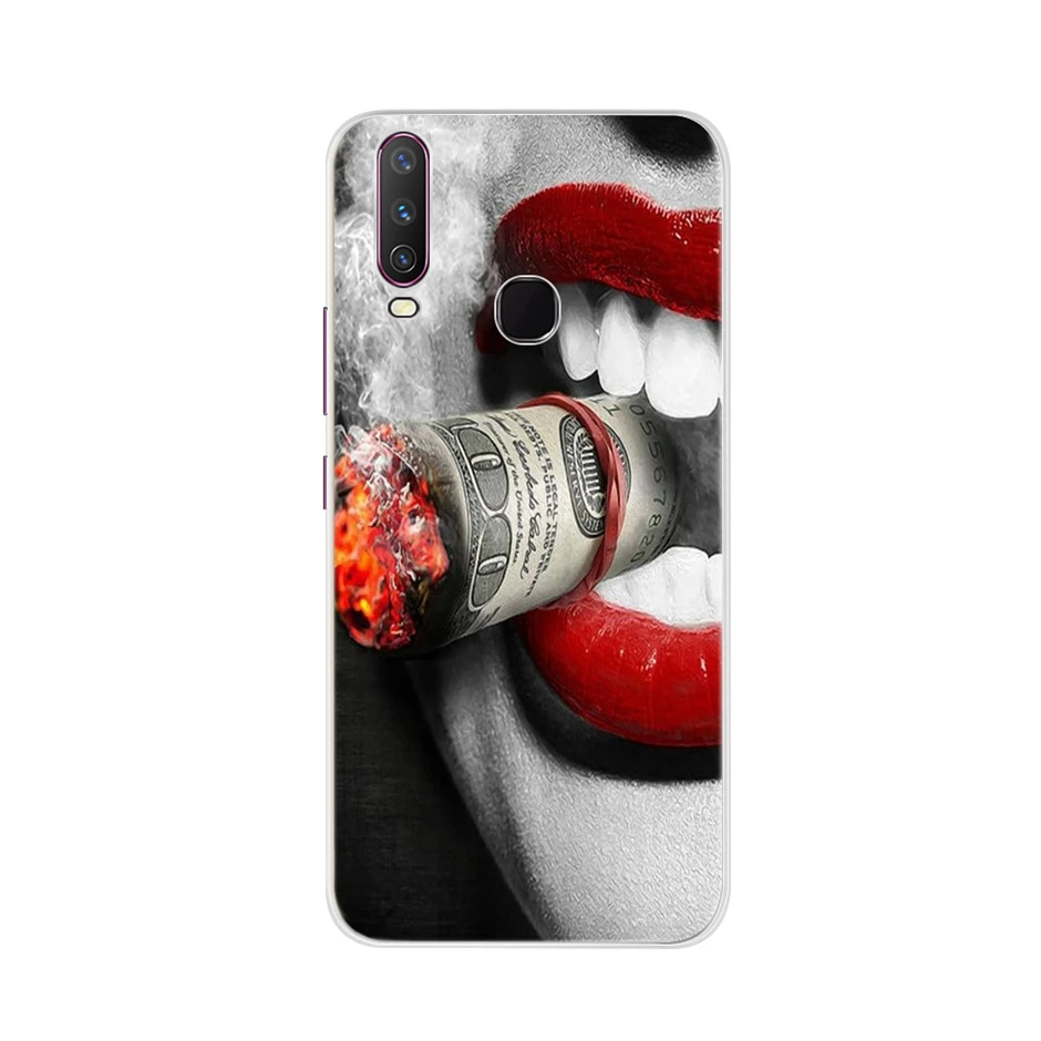 Чехол-накладка для Vivo Y12, силиконовый, прозрачный, с рисунком