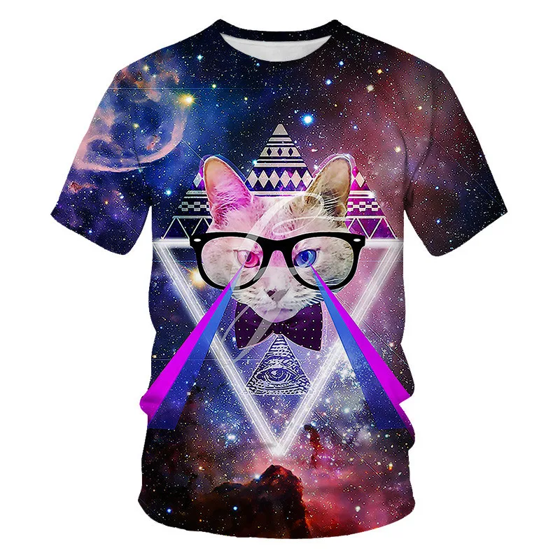Мужская и женская летняя новая футболка с 3D принтом животных, летняя модная футболка в стиле хип-хоп с забавным котом, топ с коротким рукавом, Повседневная модная футболка с о-образным вырезом