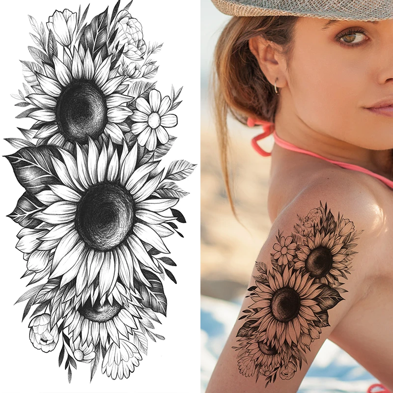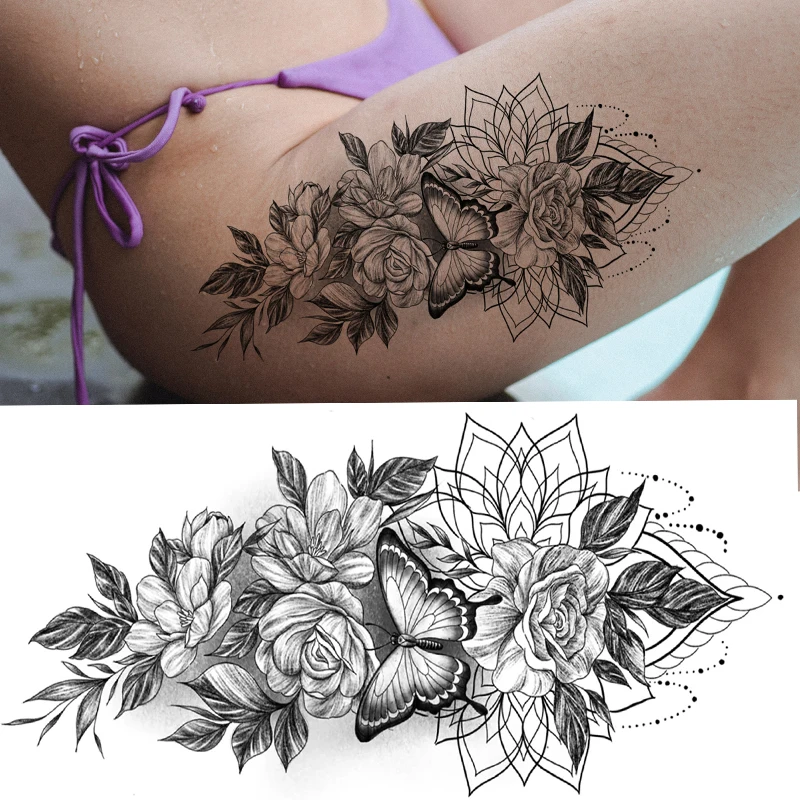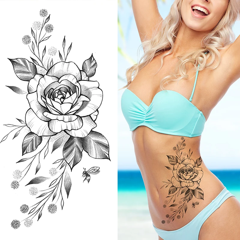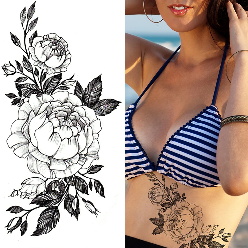 Временные татуировки с пикантными цветами для женщин, боди-арт, татуировки на руку и ноги, наклейки, реалистичные искусственные черные розы, водостойкие татуировки