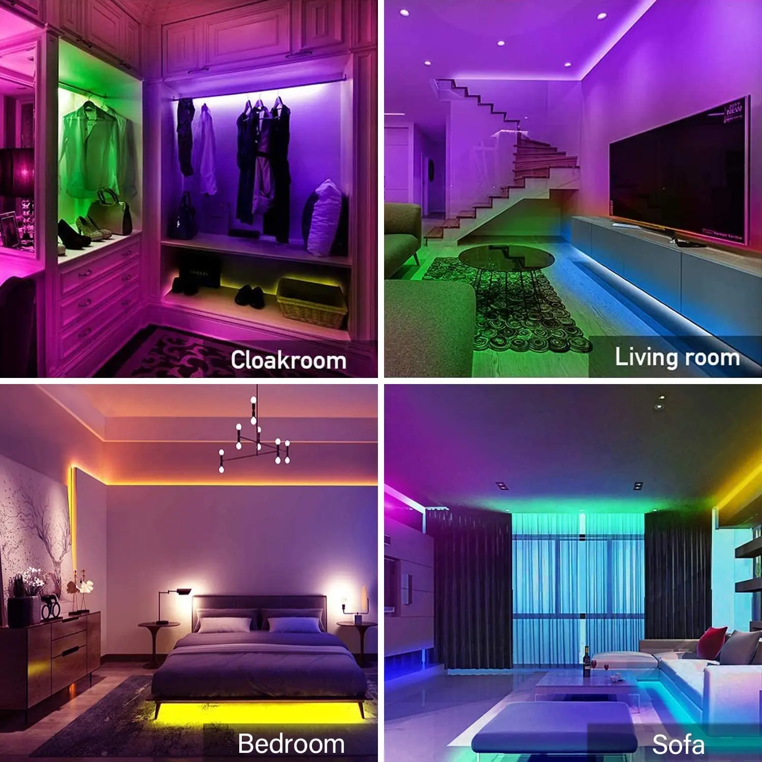 1. Светодиодные полосы RGB2. Bluetooth или IR 24Key пульт дистанционного управления3. Адаптер питания 12 В постоянного тока (ЕС/США/Великобритания/Австралия)