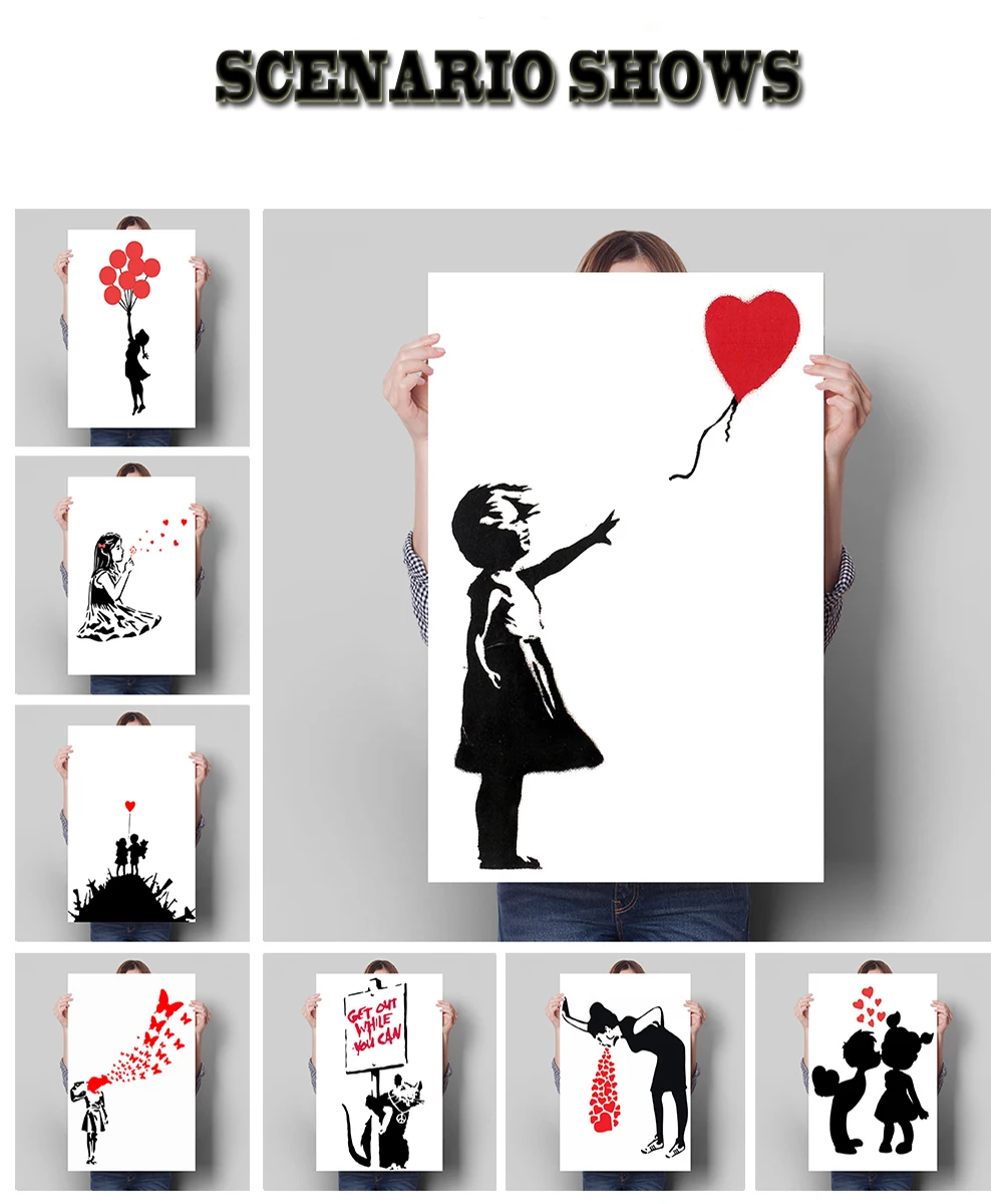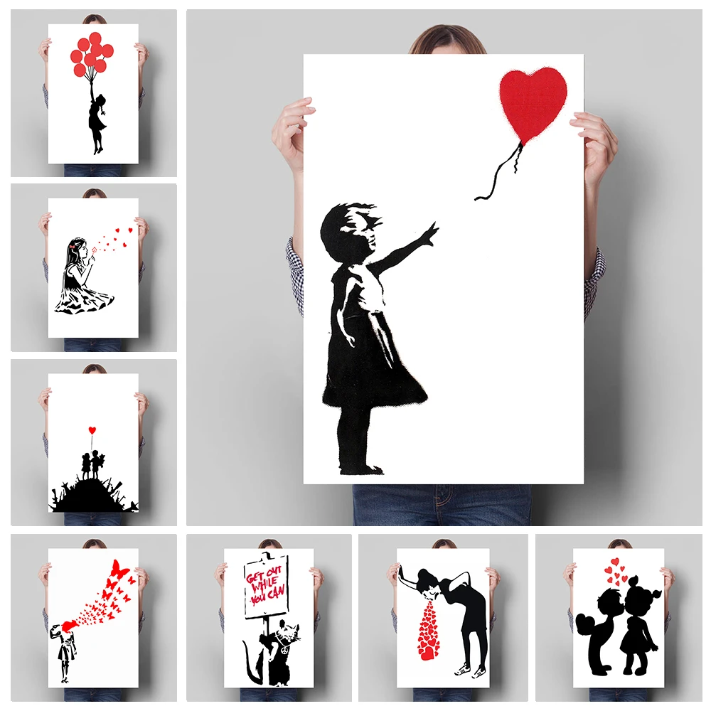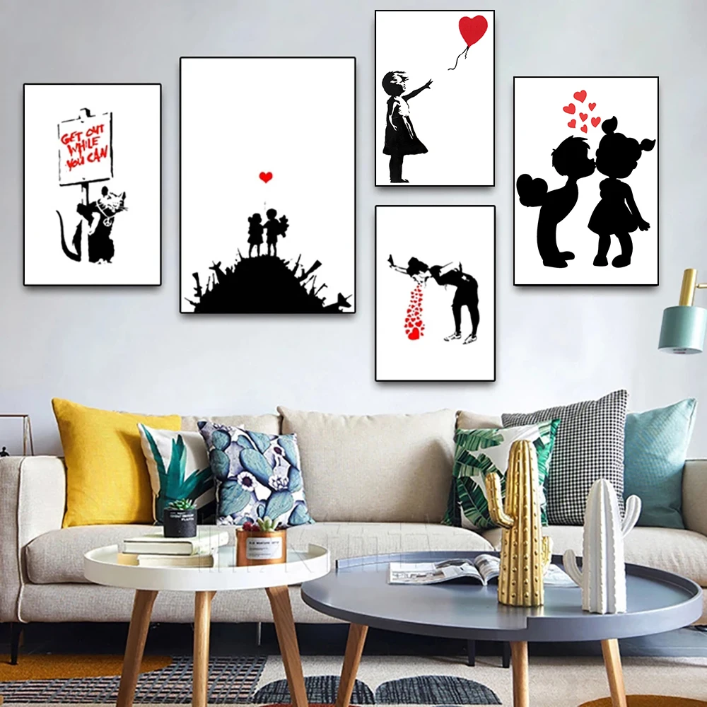 Панно Бэнкси Граффити, абстрактный черно-белый плакат, Картина на холсте и Настенная картина для комнаты, для современного домашнего декора