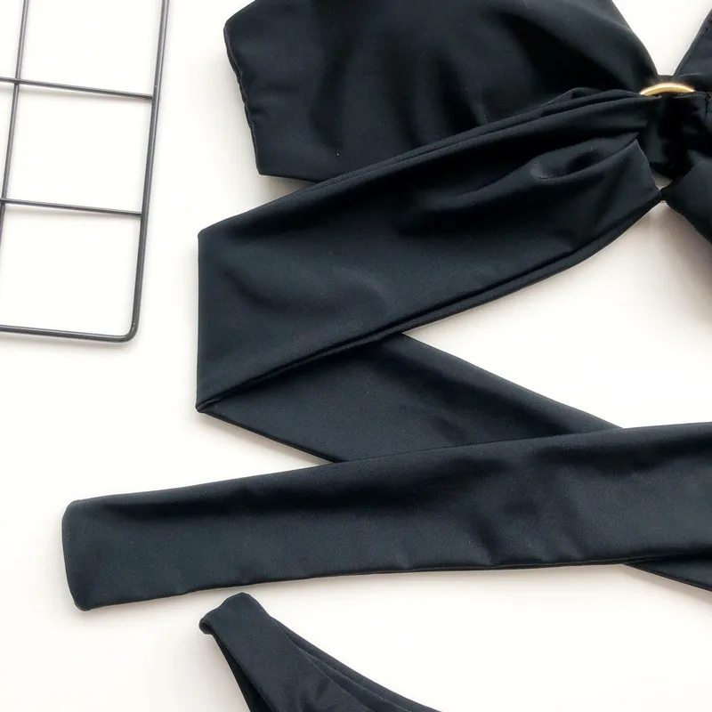 Сексуальный купальник, Женский однотонный черный бандажный бюстгаль...