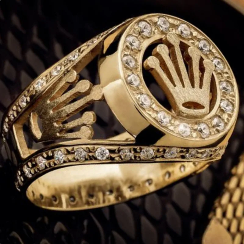Горячая Распродажа, мужское золотистое кольцо в стиле хип-хоп с инкрустацией короной, металлическое мужское кольцо для вечеривечерние в стиле панк, ювелирные изделия, аксессуары