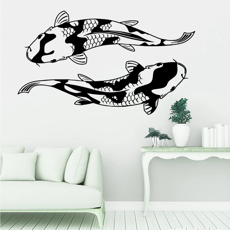 Theme2Pcs Japan Koi Carp Fish Wall Sticker