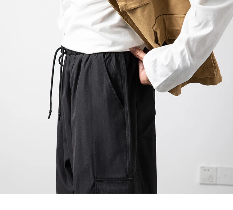 Брюки-карго мужские большого размера с лентами, с карманами, в япон...