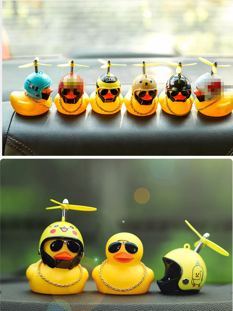 Милая маленькая Желтая утка с пропеллером для шлема, резиновая ветровка, утка, сжимаемая, со звуком, внутреннее украшение автомобиля, аксессуары