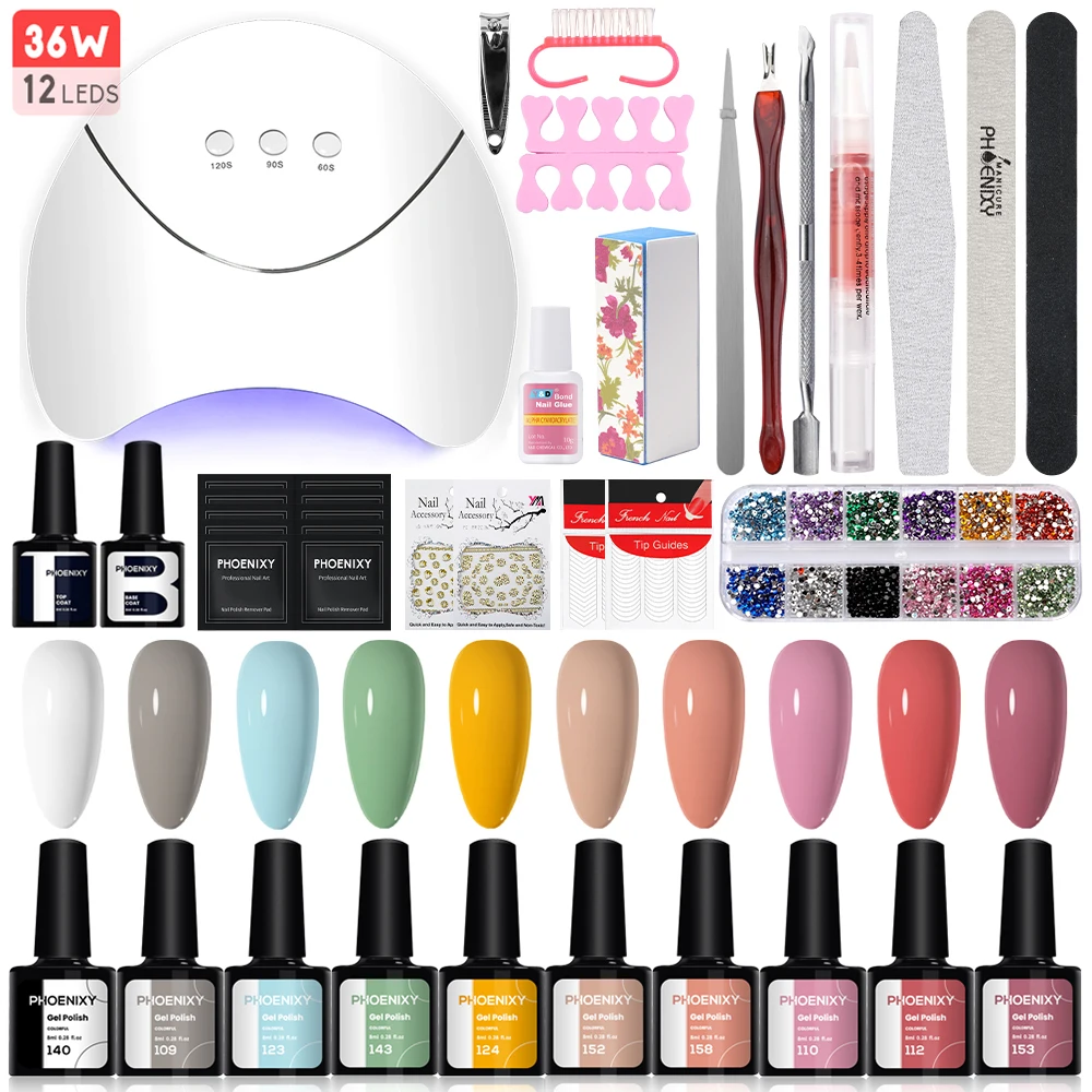 Маникюрный набор для ногтей с УФ светодиодный лампой мощностью 36 Вт полный комплект полуперманентный УФ-Лак акриловый набор 20 шт. гель-лаков Набор принадлежностей