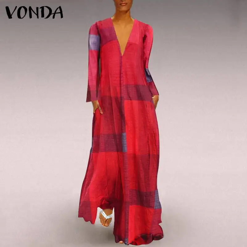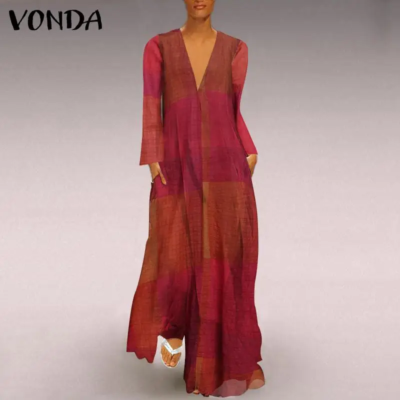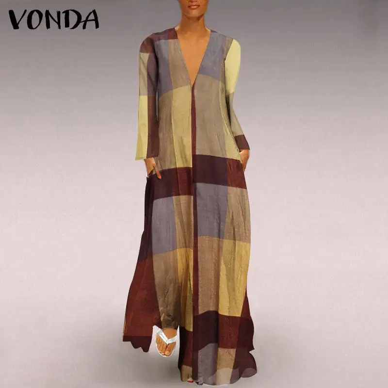 Осеннее платье-макси 2021 VONDA, винтажное пляжное платье с длинным...