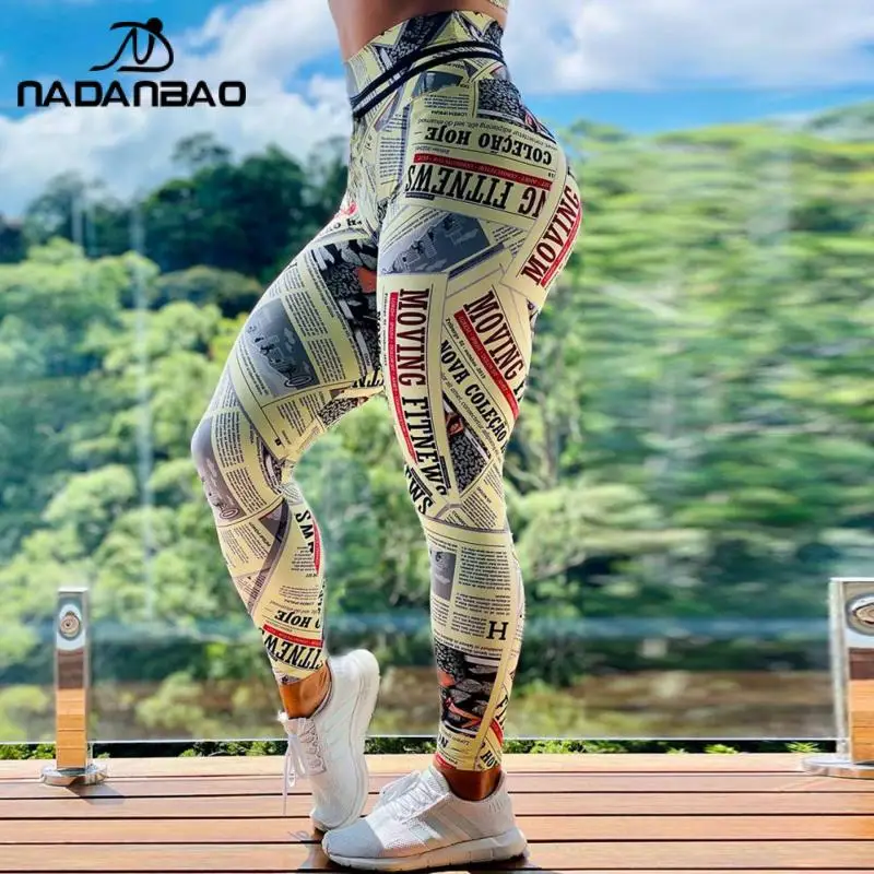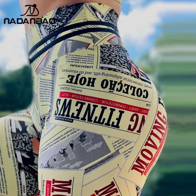Женские Бесшовные Леггинсы с принтом газет, с высокой талией