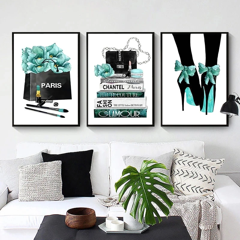 Новая Скандинавская холщовая Настенная картина, принты и плакаты, модные женские Парижские сумки, магазин духов и одежды, Настенная картина, домашний декор