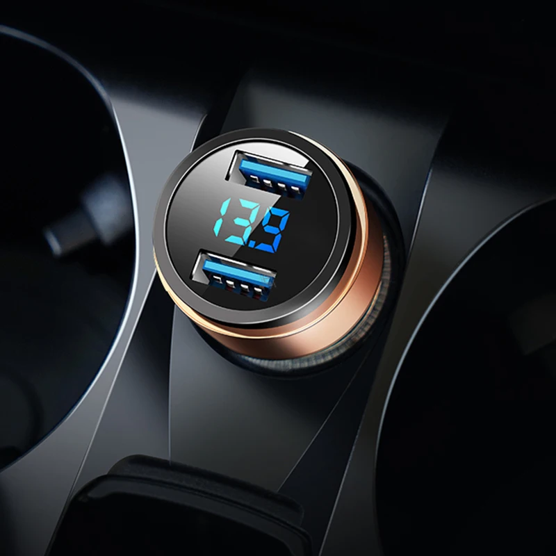Автомобильное зарядное устройство с двумя USB-портами, 3,1 А, 12-24 В, ЖК-дисплей
