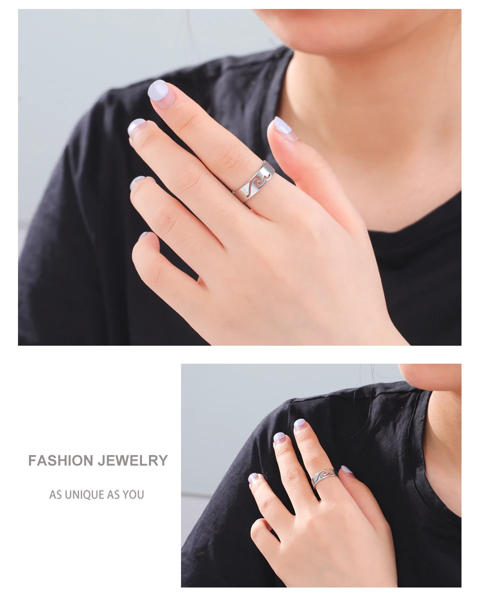 Unift, кольцо из нержавеющей стали в форме волны, морской пляж, кольца для пары, обручальное кольцо, подарки