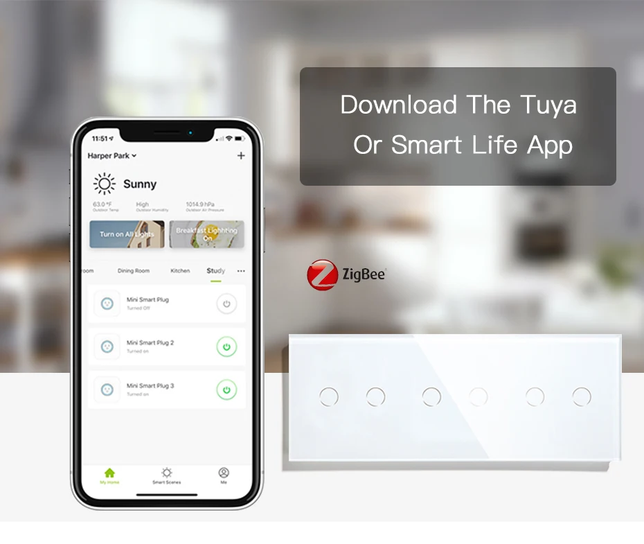 Мультиуправляемая связь: переключатели Zigbee имеют 1/2/3/4way и могут управлять одним светильник в четырех различных местах (максимум 4 способа).