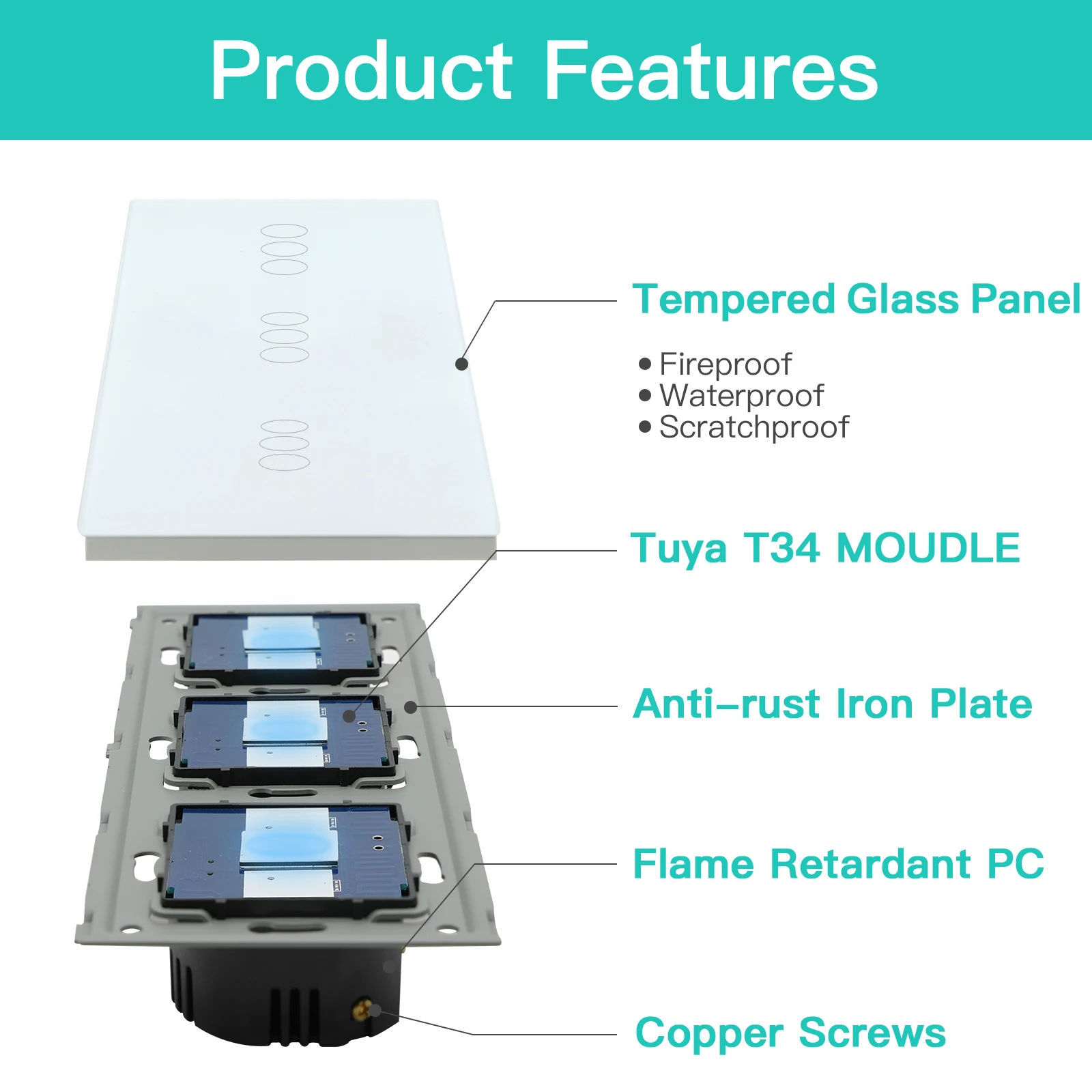 MaterialGlass Panel & Iron Plate & Plastic Switch Module