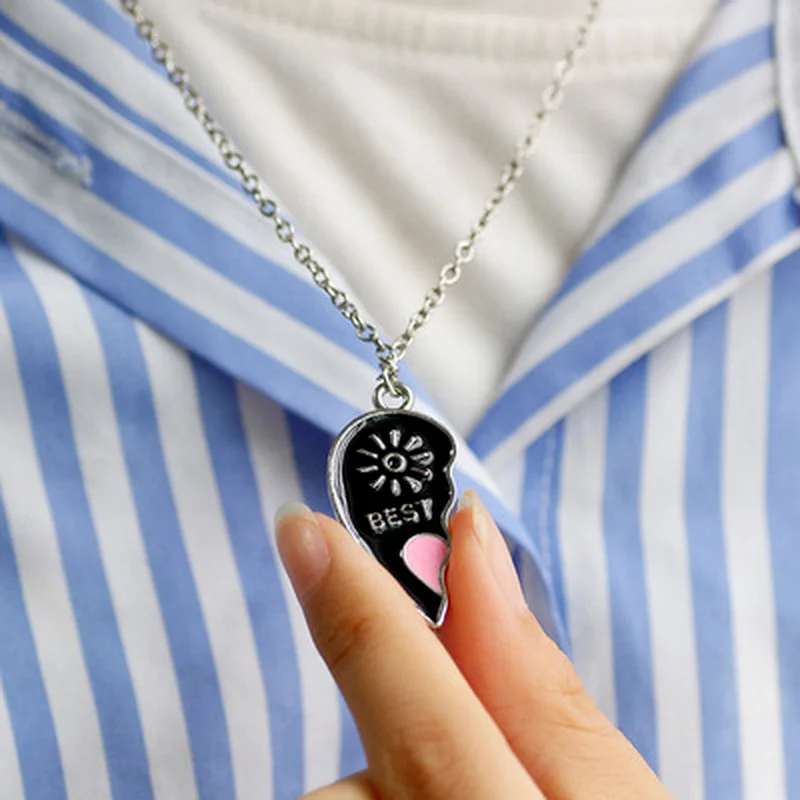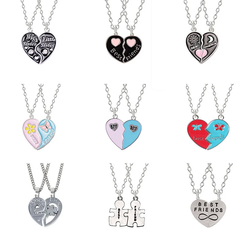 2 шт.компл. ярко-розовый синий блесток шить Heart breaker Ожерелье Лучшие друзья подвеска дружба цепи ювелирные подарки для детей