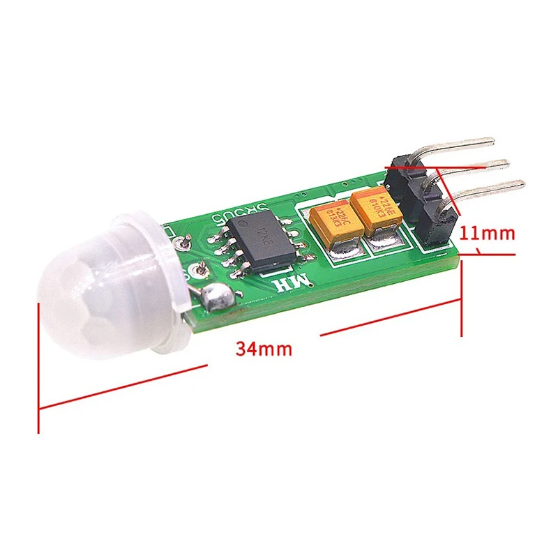 -Автоматическая индукция: чтобы войти в диапазон чувствительности на выходе, люди оставляют диапазон датчика автоматически задерживает высокий, низкий выход. Очень маленький размер. Воспроизводимый триггер: выход датчика высокий, период задержки, если есть активность человека в его чувствительном диапазоне, выход будет оставаться высоким до тех пор, пока люди не уйдут после высокой переменной задержки (автоматически Расширенный модуль датчика обнаруживает тело человека после каждой активности период задержки, И последний раз событие является отправной точкой времени задержки).