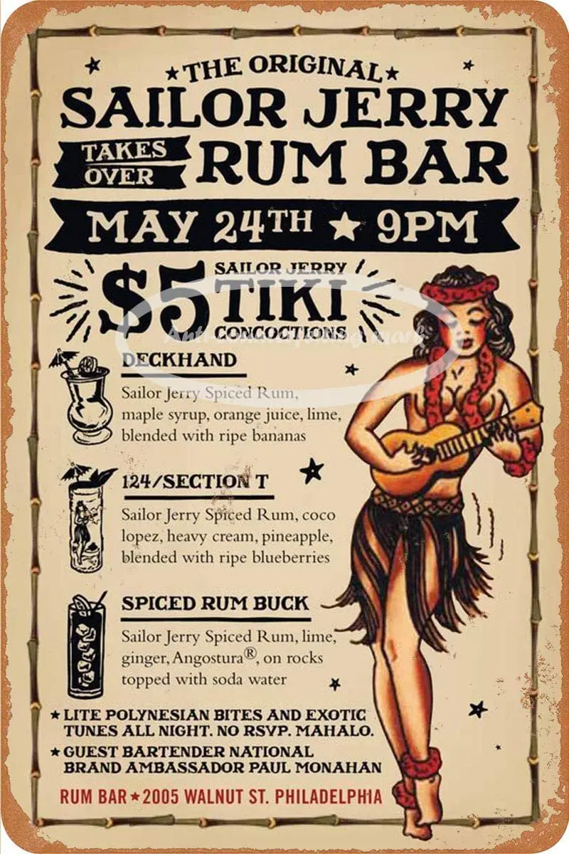 Сейлор Джерри, спиральный ром, T amp; Спиральные металлические знаки, многоцелевой Классический плакат на доску для кухни, бара P