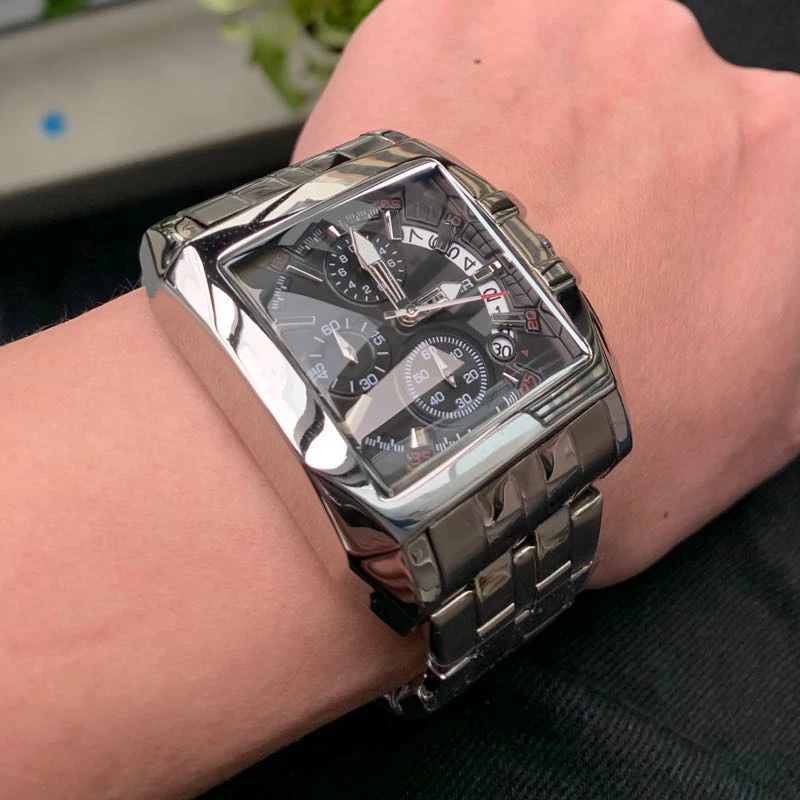 Модель: MEGIR 2018 механизм: кварцевый механизм Пол: Для мужчин и мужчин стиль: деловой, модный и роскошный Материал циферблата: Hardlex Материал ремешка: нержавеющая сталь тип застежки ремешка: раскладывающаяся застежка с предохранителем и универсальным питанием-от источника переменного или чехол Толщина: 15,5 мм Циферблат Диаметр: 40 мм длина браслета Длина: 195 мм длина браслета Ширина: 22 мм продукт Вес: Особенность 158 г: хронограф, водонепроницаемость 30 м, дата, светящиеся стрелки.