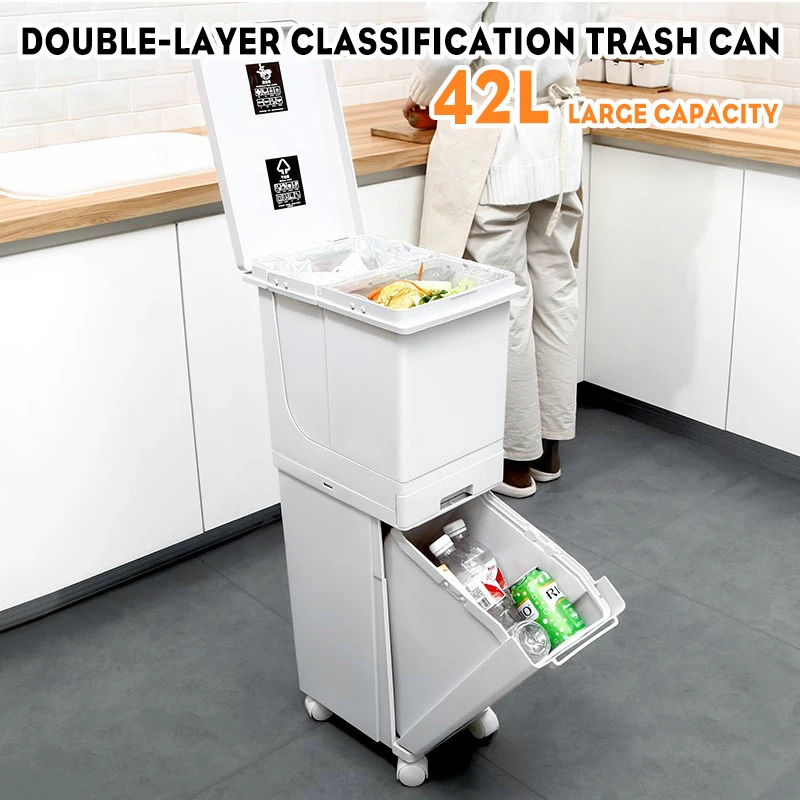 {Infomodule}Посылка включает в себя:1 X корзина для храненияСпецификация:Цвет: белый + желтый/серый + белыйМатериал: полипропиленЕмкость: 42 литраФорма: прямоугольникСтруктура: стояТип: ведроНаименование: Бытовая мусорная корзинаКлассификация мусора: классификация, хранениеПодходит для: ванной комнаты, кухни, гостиной, спальни и т. д.Характеристика:-Не нужно наклоняться, Подходящая высота-Снимите перегородку, можно использовать как большая емкость под мусор-Удобная ручка, можно повесить и убрать-Вручную нажмите, чтобы открыть крышку-Большой дизайн открывания, более удобный и быстрый-Универсальные колеса, легко нажимать и тянуть, экономит усилия-Нижняя конструкция пола, тип педали, мусор может быть переработан-Легко сортировать, экономить место, сортировать и выкидывать мусор в порядке