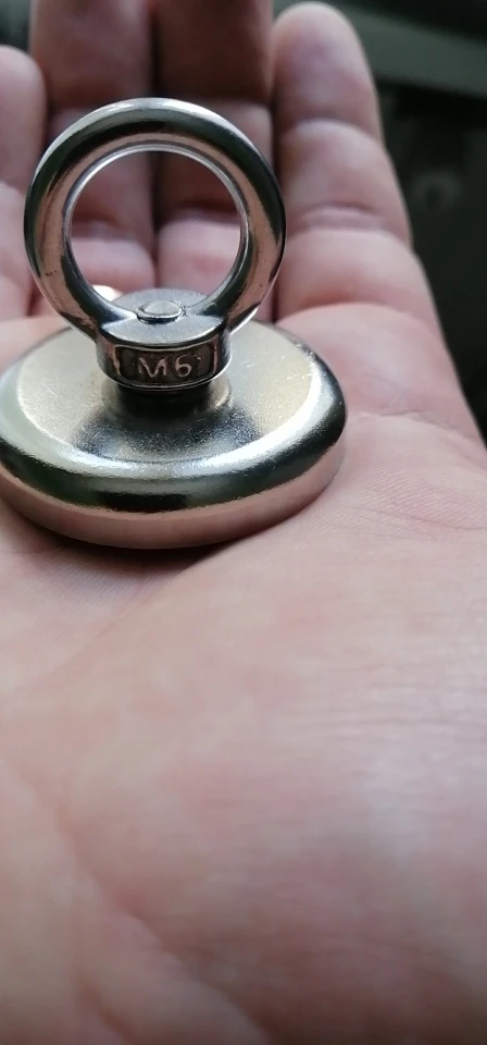 очень маленький магнит. поставляется без верёвки. гантельку 2кг поднимает. блесна на озёрах вытаскивал без проблем. буду заказывать диаметром побольше однозначно..