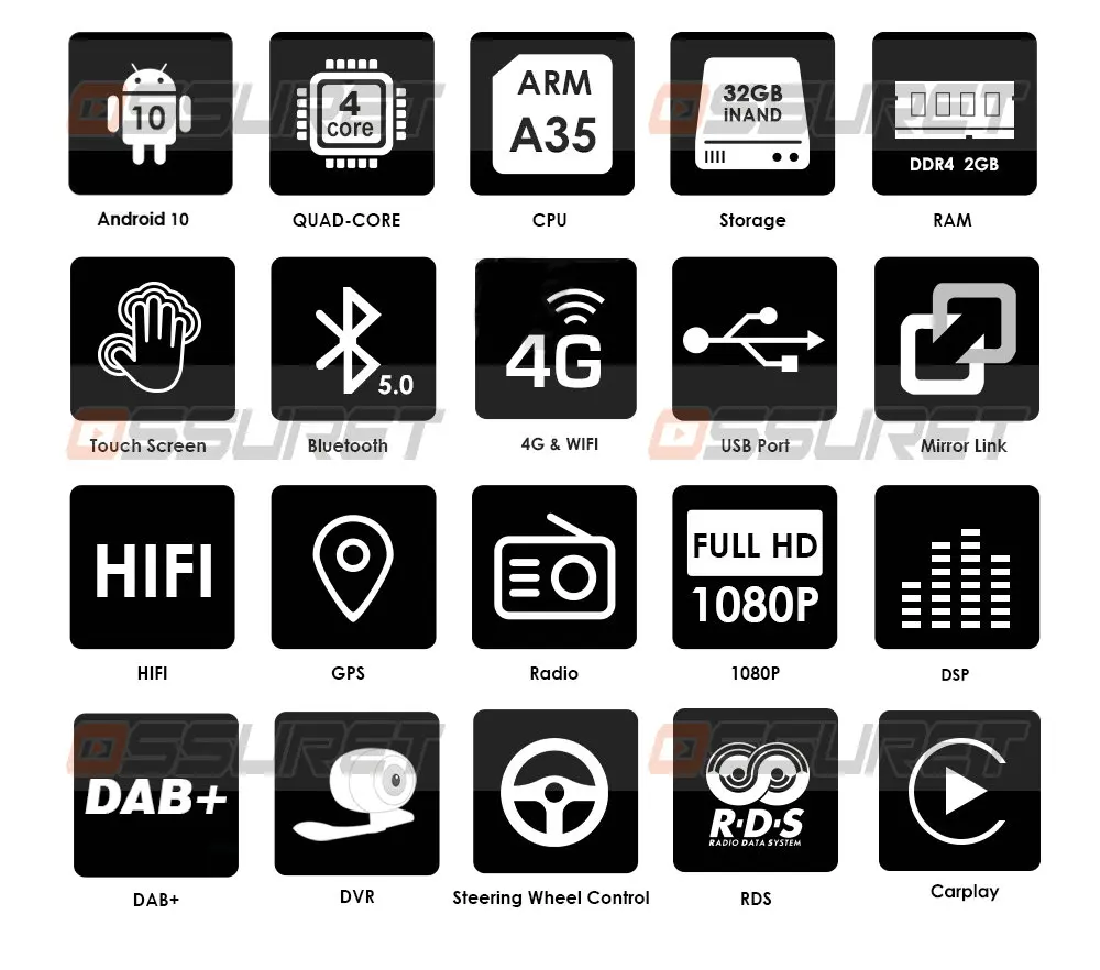 Автомагнитола 2DIN, 4G, Android 10, 9 дюймов, HD 1024*600, четырехъ...